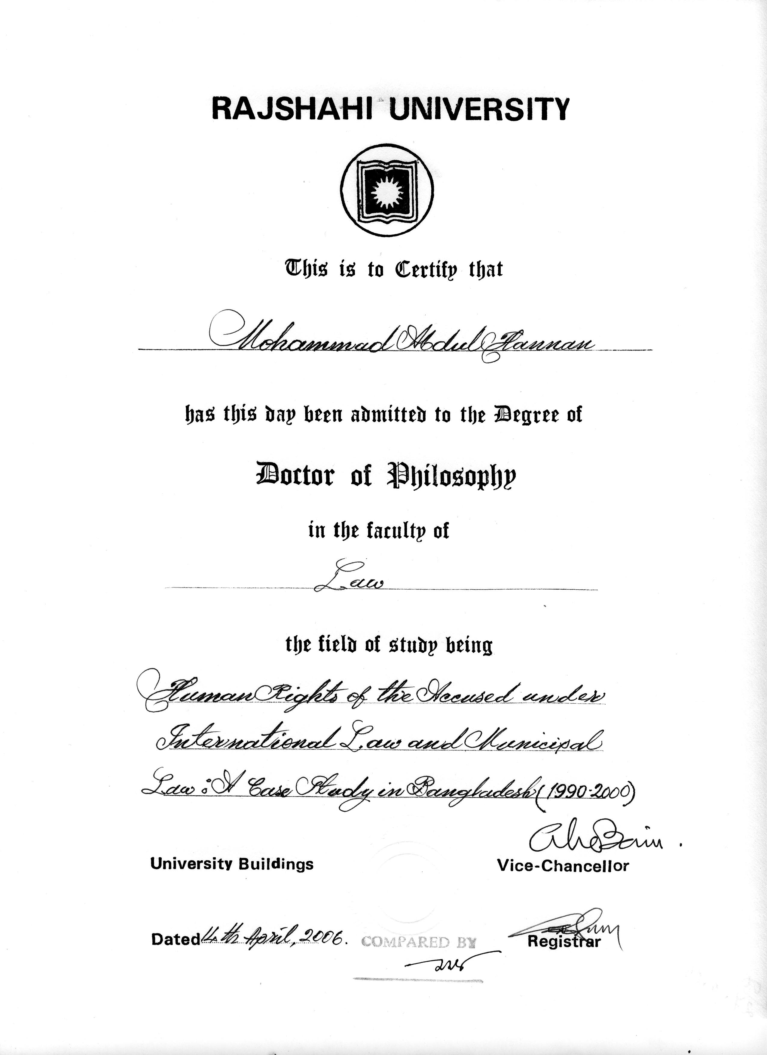 PhD Certificate