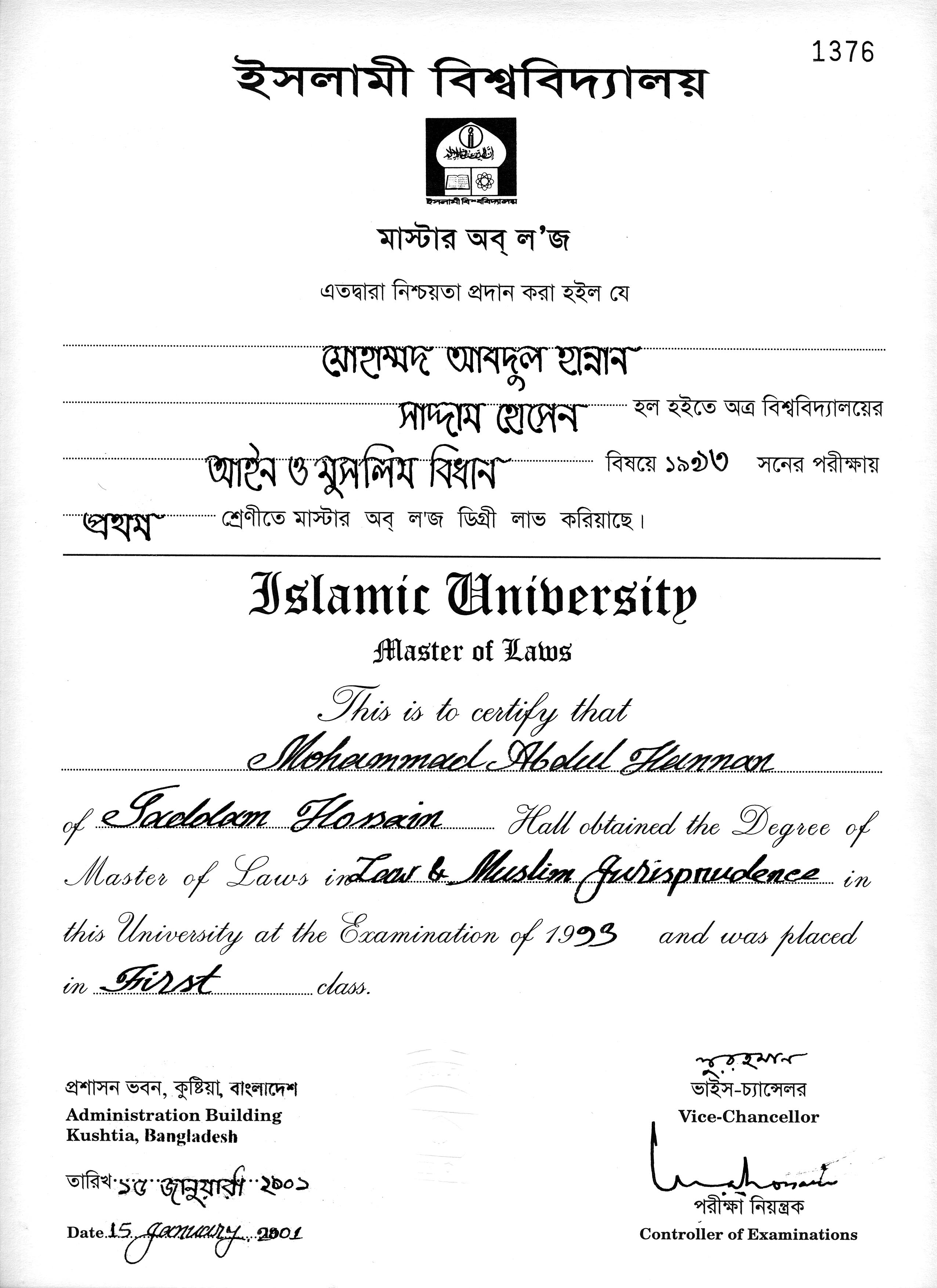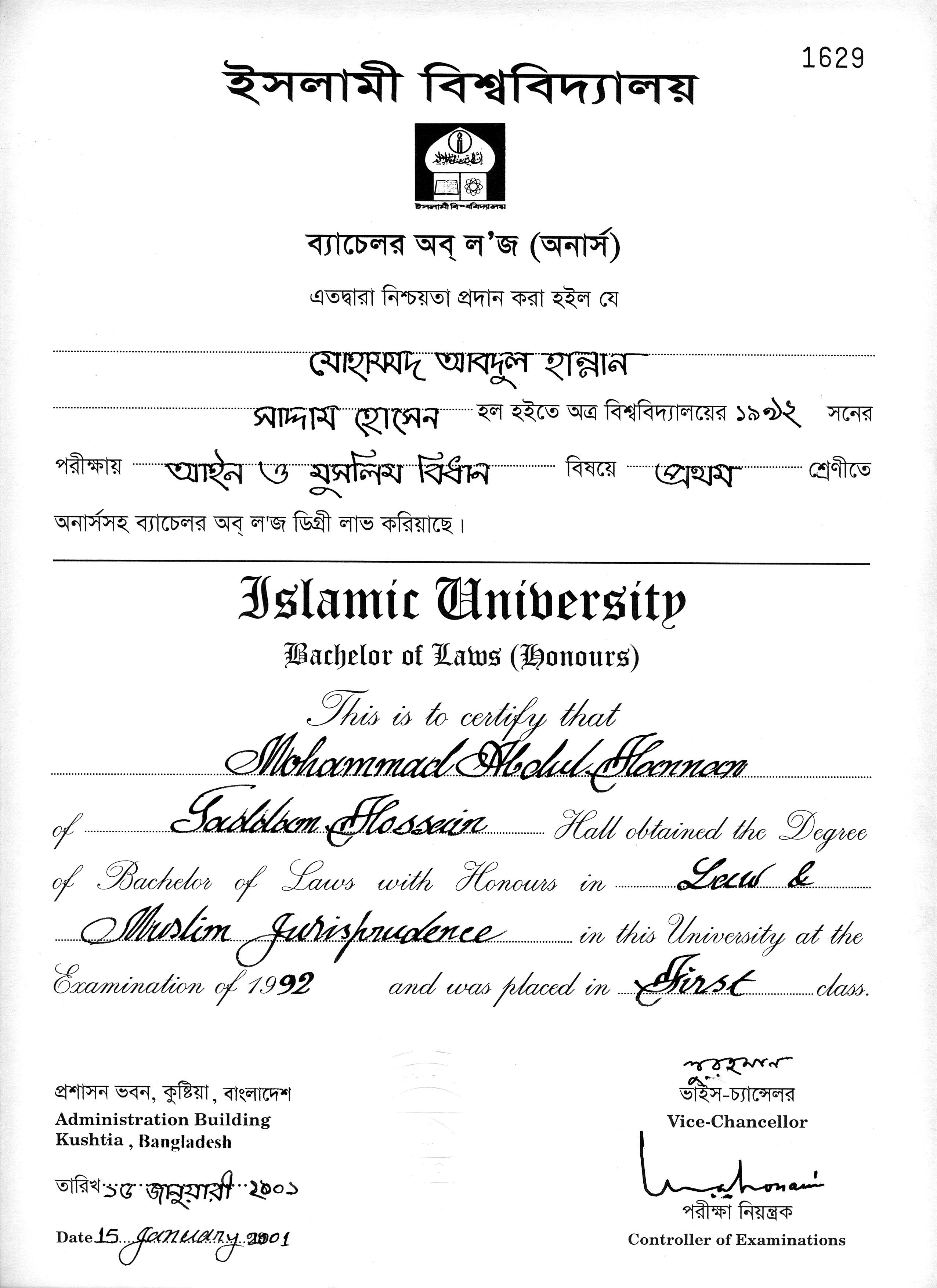 Islamic University, Kushtia, Bangladesh | 1992 |